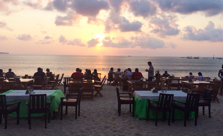 バリでいい雰囲気のレストランで、夕日を眺めながら乾杯〜そんなゆっくりできる時間もいいでしょう。