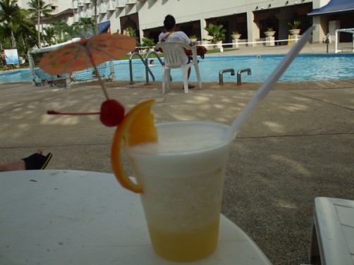 いったん部屋に戻りビールと氷をもったたらプールへ。