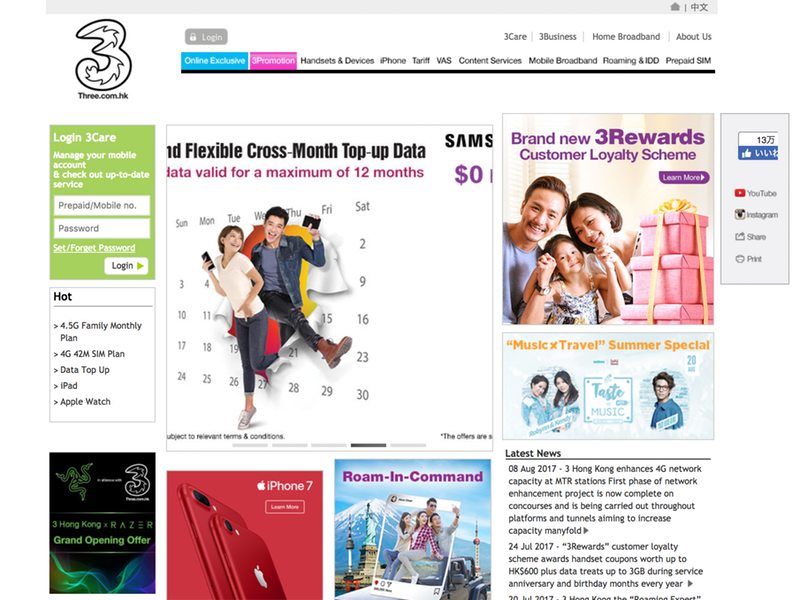 Three hkという現地のキャリアで携帯を契約できるとのことだったので、早速旺角(Mong Kok)の3Shopへ。